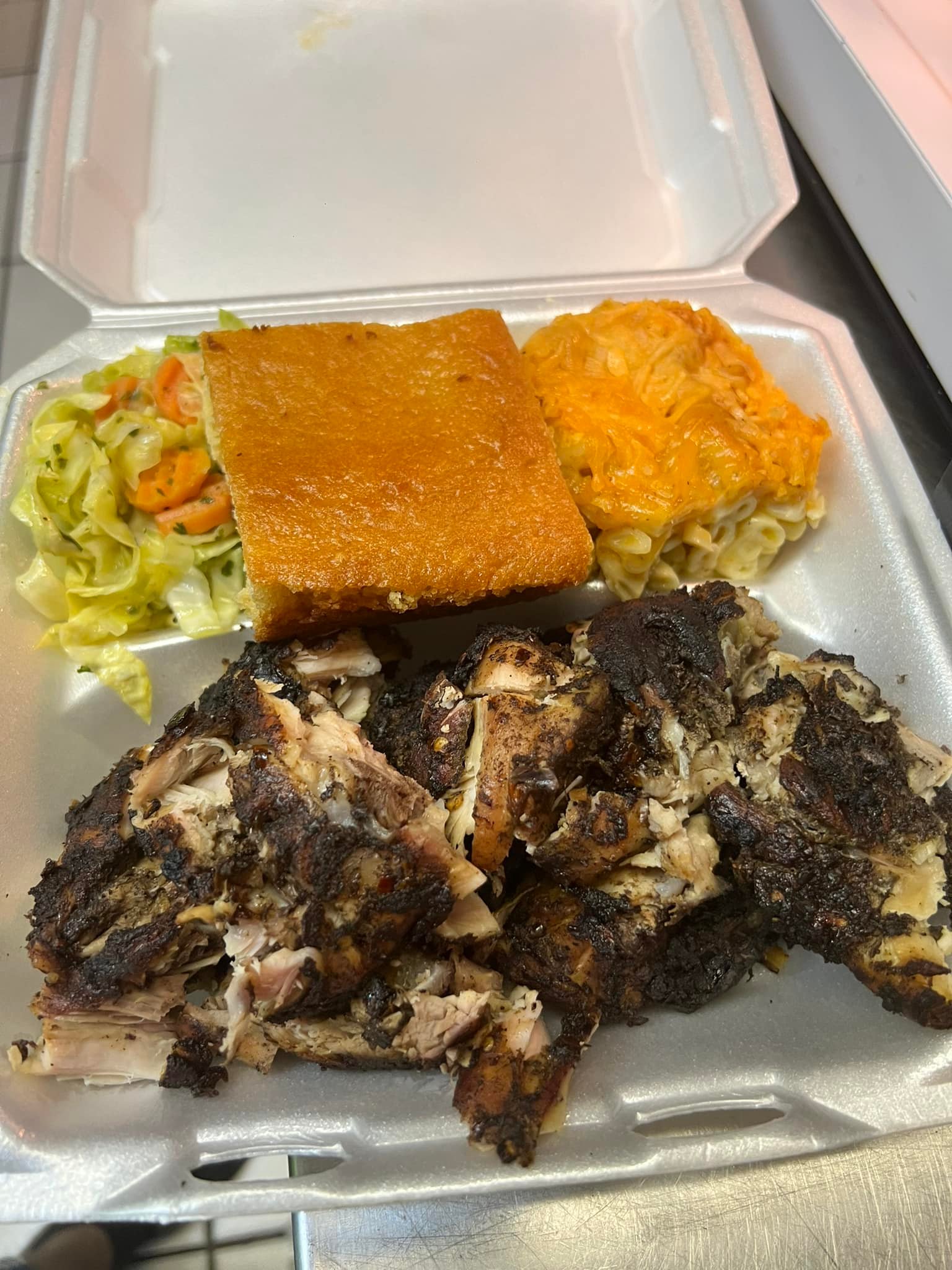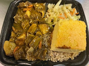 Tried first time today for lunch, it was great! Got curried chicken with cabbage and rice. Literally melts in mouth. I ate half for lunch and was stuffed, took the other half home for dinner. I hope they have goat next time. The lady who took the order and cooked the food was super nice. And she made the cabbage fresh. Also got my coworker the same plate, and she also said it was delicious. Highly recommended. The place smells so good even when you just walk in! Oh, and I forgot to say...the plate also came with cornbread...THE BEST CORNBREAD I EVER HAD! And that's saying much from a southern American. Soooo good!